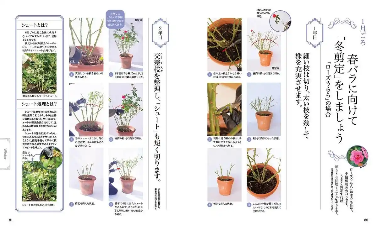 | 鉢植えと庭植えの違いをもとに、それぞれに特化した管理のコツを紹介します。1年間のお手入れの流れがよくわかります。 | |||||||||||||||||