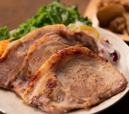 「米の娘ぶた」は、山形県金山町の農場で当社がこだわりを持って育てるブランド豚です。国産の飼料用米とホエー(乳清)を配合した飼料を食べて育つ豚で、やわらかい肉質と、かむたびにうまみがあふれる、あっさりとした甘みのある脂身が特長です。