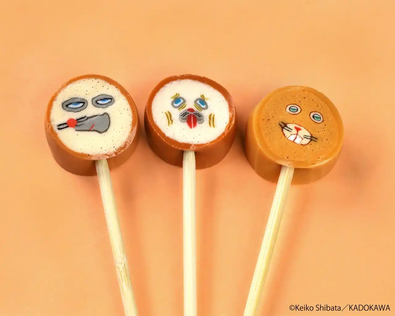 パンどろぼうたちの表情をダイレクトに楽しめる、存在感抜群の大きな棒付きキャンディです。職人が細かなラインまでこだわり抜いた表情は、食べるのを一瞬ためらってしまうほどの再現度。定番の顔から「まずい」の顔まで、手に持って写真を撮れば、あなたも「パンどろぼう」の世界の一部になれる特別な一本です。 |
