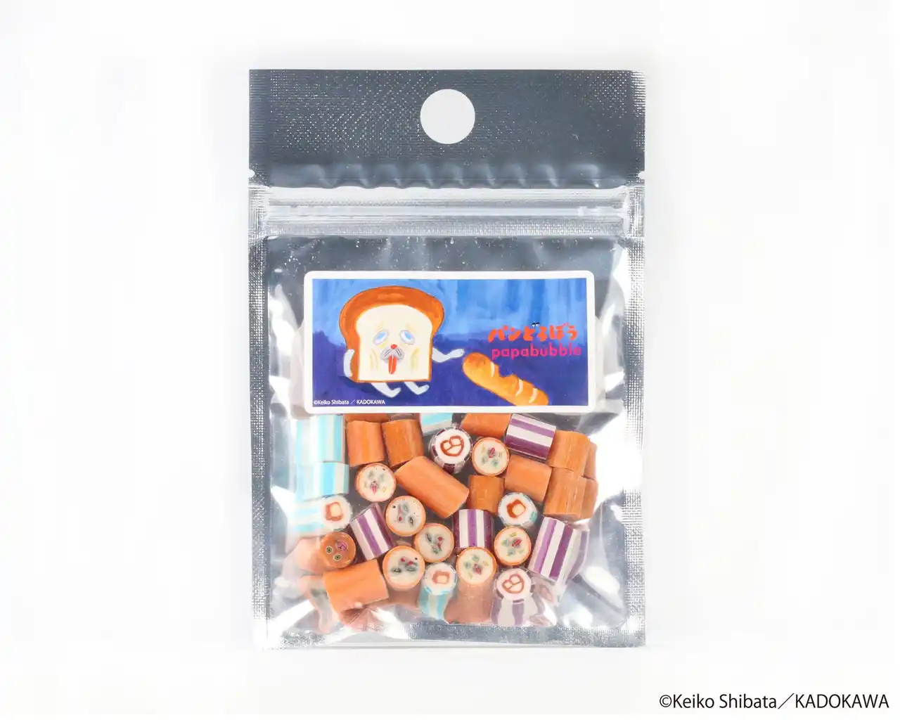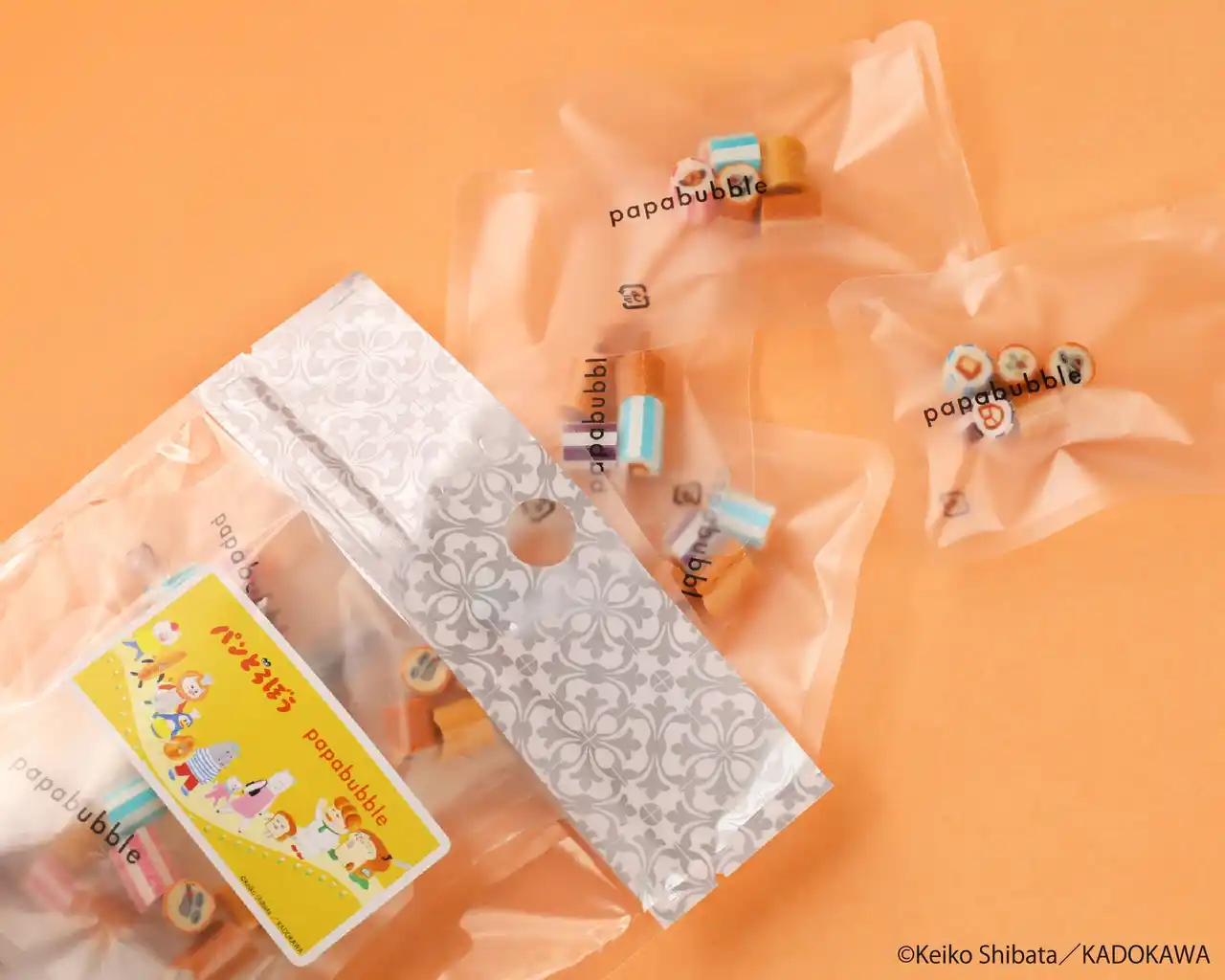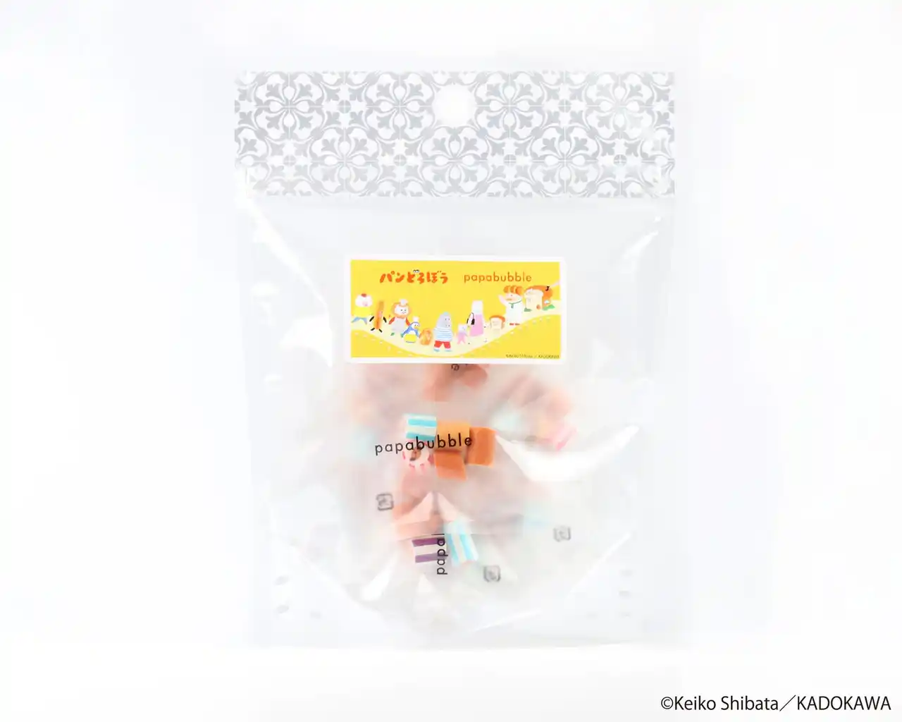 「パンどろぼう」「にせパンどろぼう」そして彼が愛してやまない“パン”の絵柄を詰め込んだ、物語の始まりを予感させるセットです。パパブブレの職人が一粒ずつ丁寧に作り上げた表情は、見つめるだけでにっこりしてしまう愛らしさ。 |