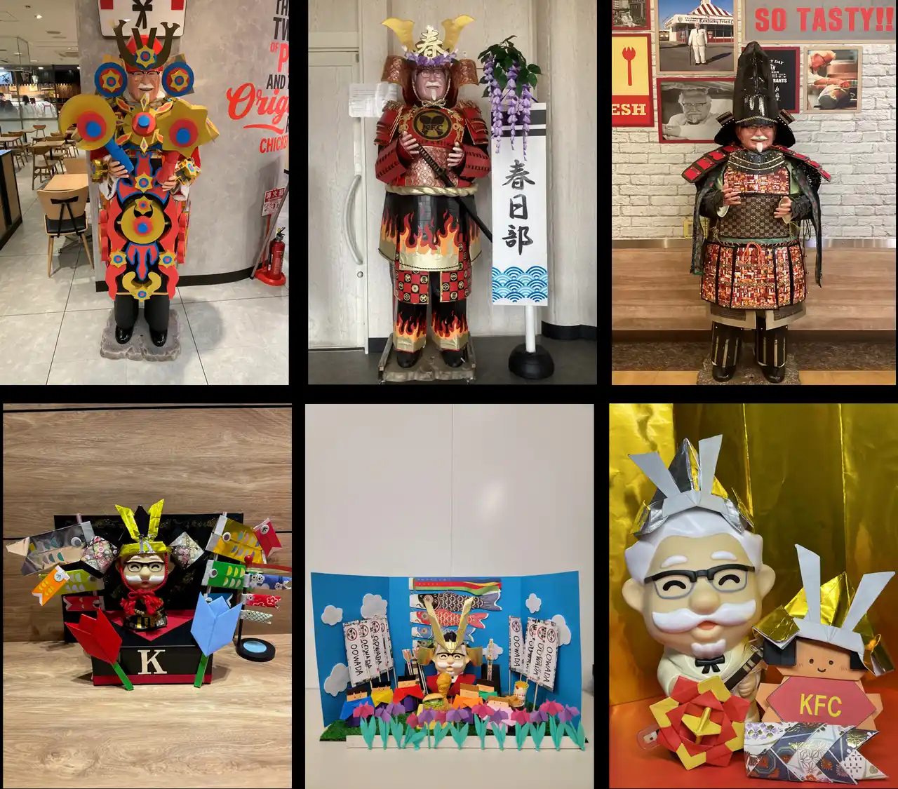 | KFC公式noteでは、昨年実施した「武者カーネルコンテスト2025」の結果発表記事を公開しています。立像部門第1位はKFC阪急茨木店(大阪府)、フィギュア部門第1位はKFC三宮さんプラザ店(兵庫県)が受賞しました。ポップで力強いデザインや、細部までこだわった装飾が高く評価されています。その他の上位入賞・10作品については、以下の記事をご覧ください! | |||||||||