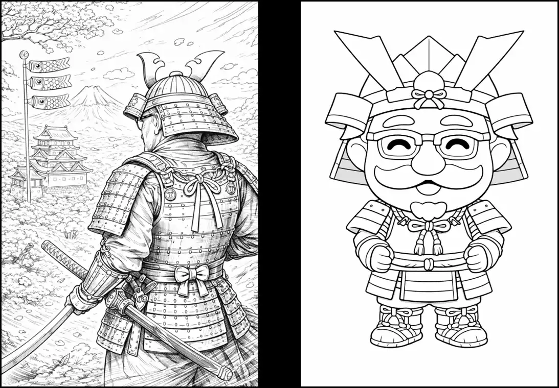 | 今年は、全国のKFC店舗にて「武者カーネル塗り絵」(全2種)を配布します。さらに、完成させた塗り絵を対象期間中に店頭へお持ちいただき、店舗従業員にご提示いただくと、数量限定の「武者カーネルオリジナルステッカー」をプレゼントします。ぜひ、あなただけの「武者カーネル」を完成させてお楽しみください! | |||||||||