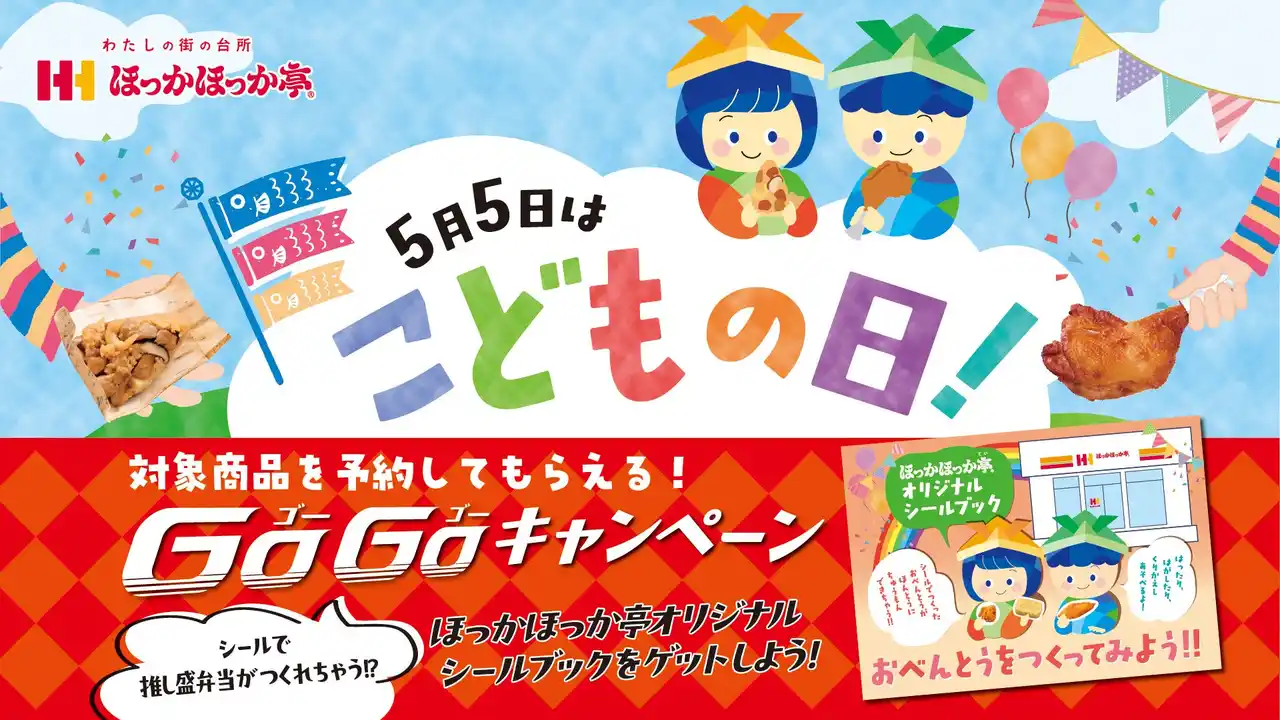 | 店頭では、こどもの日に向けて、事前予約を好評受付中。また、「ほっかほっか亭へ“Go Go”キャンペーン」として、対象商品をご予約いただくと、全国で先着10,000名さま限定&2026年5月5日(火・祝)の店頭受け取り限定で、ほっかほっか亭オリジナルシールブックをプレゼントいたします。 | ||||||||||||||