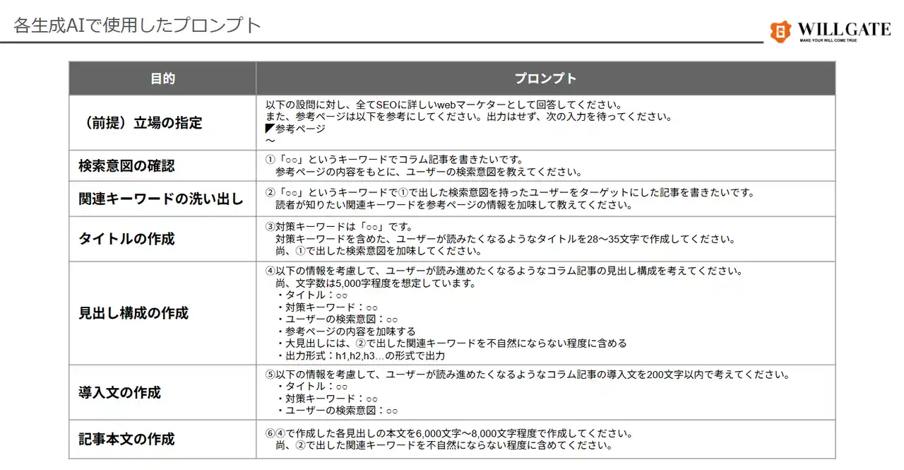 | └検索意図、関連キーワードを踏まえたタイトル・見出し構成・本文の作成 | |||