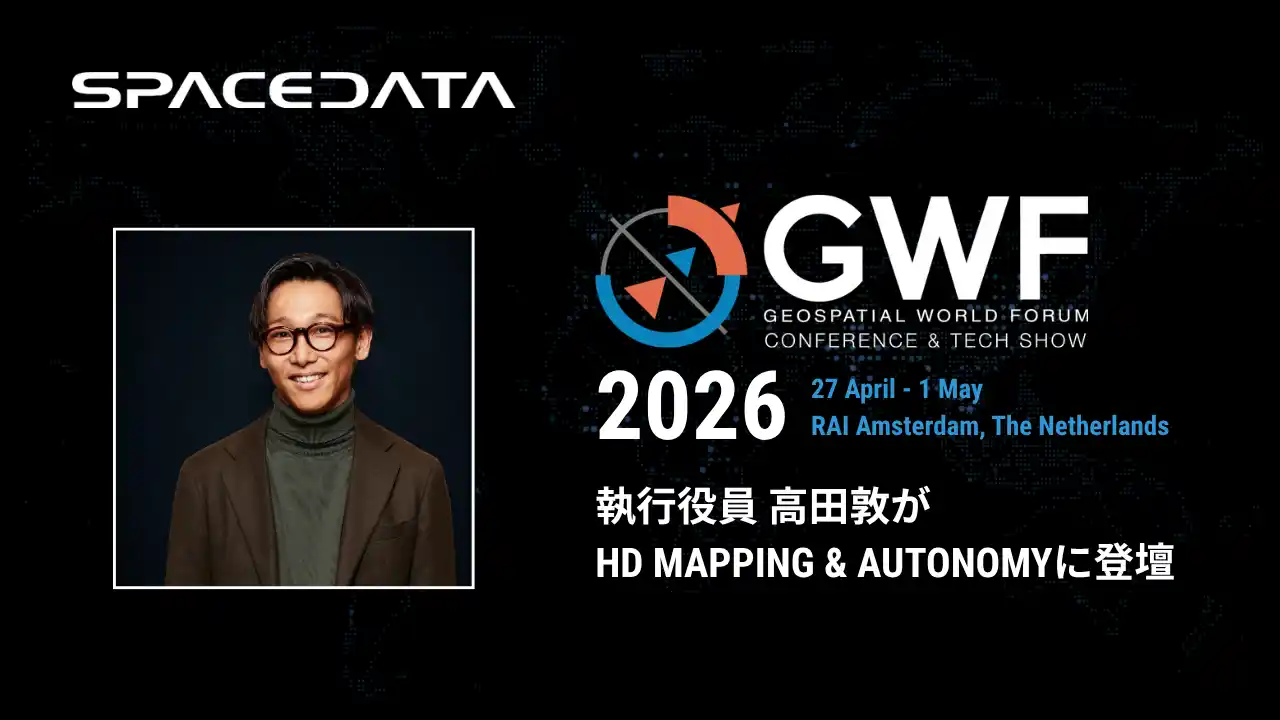 株式会社スペースデータ(東京都港区、代表取締役:佐藤航陽、以下「スペースデータ」)は、2026年4月27日(月)から5月1日(木)にかけてオランダ・アムステルダムのRAI Convention Centreで開催される「Geospatial World Forum 2026(GWF 2026)」のテクニカルトラック「HD Mapping & Autonomy」にグローバルアライアンス戦略室 執行役員の高田敦が登壇することをお知らせいたします。 |