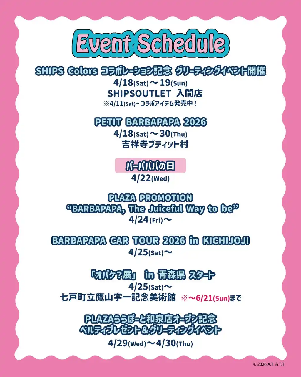 ●4月18日(土)~4月30日(木) PETIT BARBAPAPA 2026 吉祥寺プティット村 |