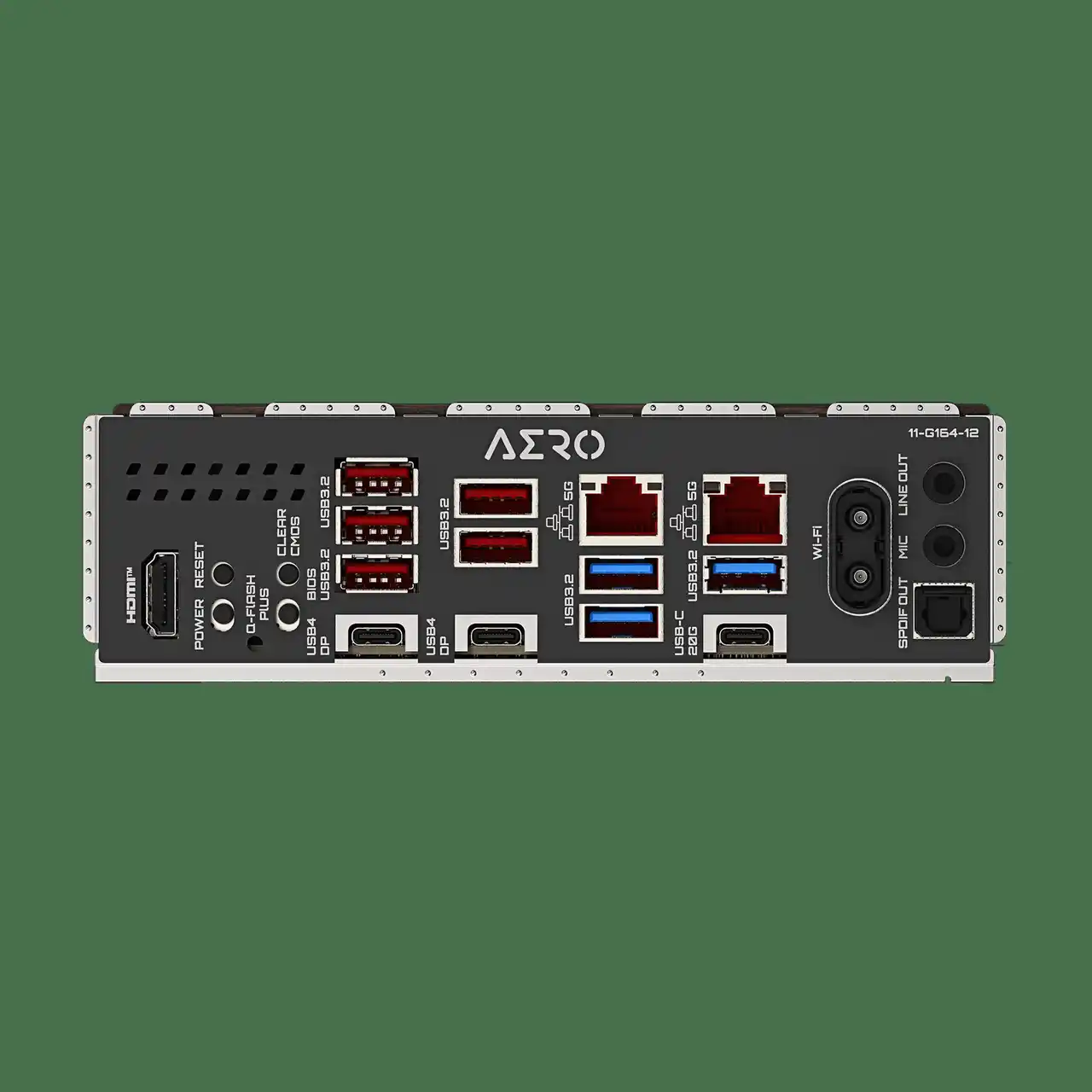 | 16+2+2 フェーズ・デジタル電源設計、VRM 用大型ヒートシンク & M.2 Thermal Guard L、EZ-Latch Plus による PCIe x16 スロットのボタン式クリックリリース、M.2 コネクタのネジ無し EZ-Latch 設計、DDR5 EXPO & XMP 対応、リア2連 USB4 Type-C (40Gb/s) + USB 3.2 Gen.2×2 Type-C (20Gb/s)、2 連 PCIe 5.0 + 2 連 PCIe 4.0 M.2 スロット (磁石による位置合わせが容易な M.2 EZ-Match 付; ネジ不要着脱可能)、PCIe x16 UD スロット X アーマー、5 GbE + 5 GbE 有線 LAN、WIFI 7 802.11be 無線 LAN + BT 5.4 (アンテナ線のワンタッチ着脱可能 EZ-Plug)、DriverBIOS (WIFI ドライバー内蔵式 BIOS)、一体型 I/O バックパネル、内蔵式 HDMI ディスプレイ端子、Q-Flash Plusなどを備えた AERO X3D 木目外観のダーク・マザーボードです。 | ||||||||||||