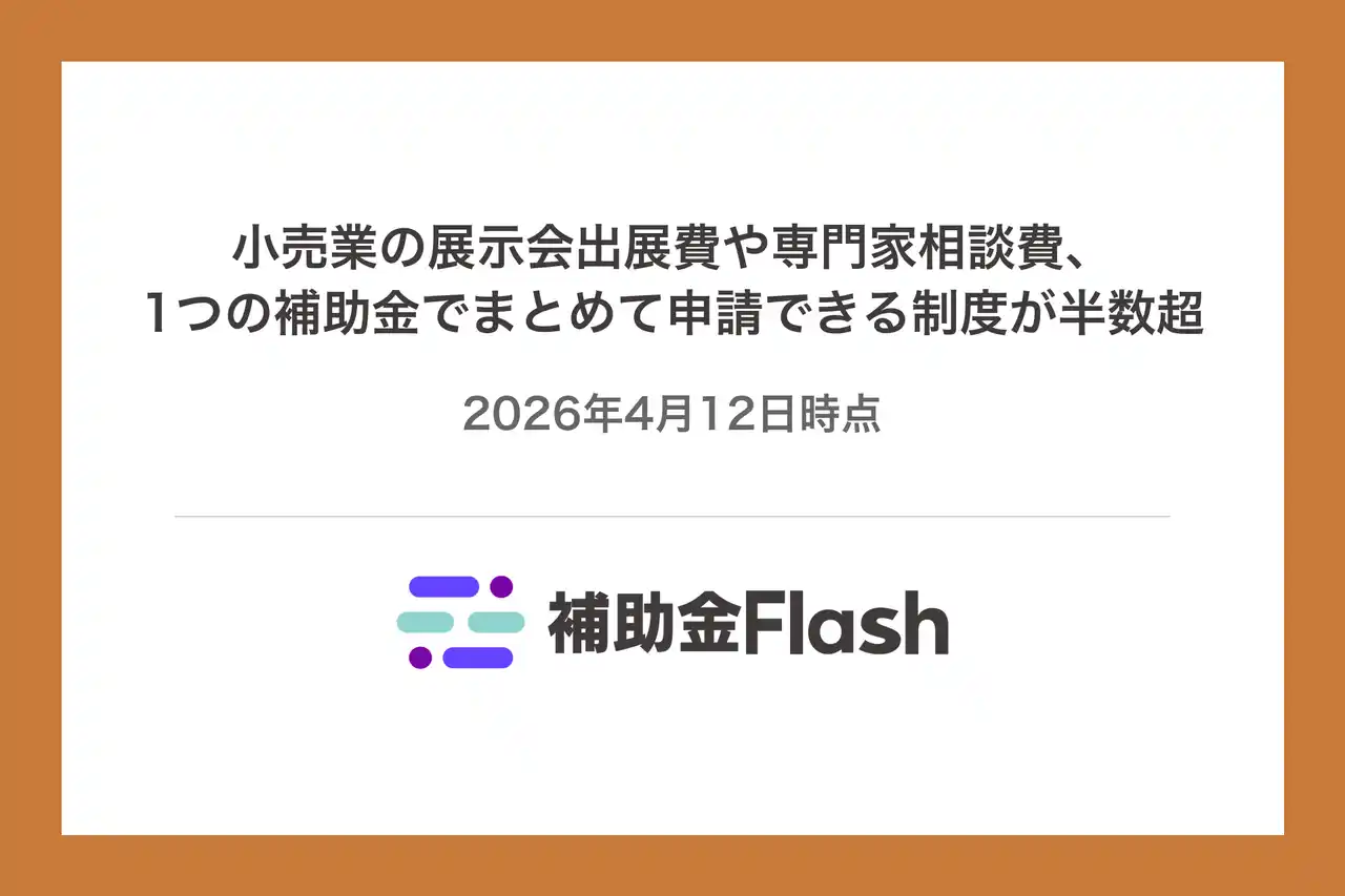 | 株式会社Franca AI(本社:東京都中央区)が運営する、全国の補助金・助成金を検索できるサービス『補助金フラッシュ』(https://hojokin-kensaku.jp/)は、2026/04/12時点で公募中の卸売業・小売業向け販路開拓関連の補助金・支援制度30件を集計分析しました。 | ||||||||||||||||