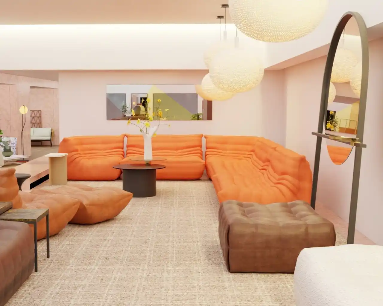 内装には大理石や木材をふんだんに使用。スタッフと日常会話を交わすようにインテリアの相談ができる、落ち着いた空間設計です。ブランドの主軸アイテムであるソファに加え、周辺家具も組み合わせることで、コンテンポラリーなライフスタイルをトータルにご提案いたします。 |