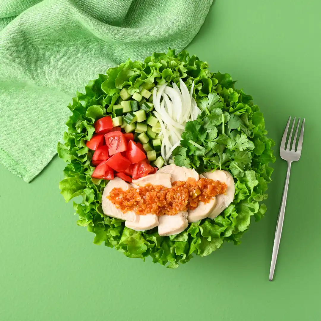食べるためのサラダ。特製ねぎたれのかかったよだれ鶏と |