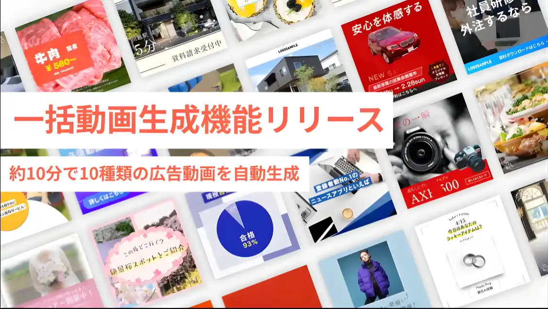 今回追加した新機能は、独自の動画フォーマットとユーザーの画像素材を組み合わせる生成方式を採用しました。AIが素材とコピー文を自動で解析し、最適なレイアウトで動画を制作するため、著作権や倫理面の懸念を抑えつつ、広告品質の動画を短時間で量産可能です。また、生成後もテキストや画像の差し替えを直感的に行える柔軟性も備えています。 当社は今後も、広告クリエイティブ制作の生産性向上を目指し、現場の課題に寄り添った機能開発を進めてまいります。 |