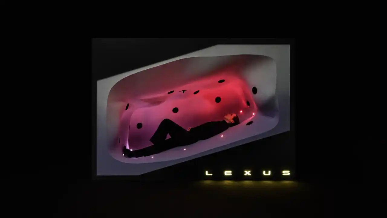 一歩足を踏み入れれば、そこは繭(まゆ)のように柔らかなポッド、ショーファーカーの後部座席に身をゆだねるような、穏やかで親密な時間が流れます。横たわると、熱感知システムがあなたの呼吸のリズムを静かに読み取ります。その鼓動に応じるように、光と音が空間全体で、あなただけの「振り付け」を紡ぎ出します。一人ひとり異なるその体験は、身体を深い呼吸と安らぎへと導き、クルマという空間を「心の聖域」へと変容させていく様子をお楽しみください。」 |