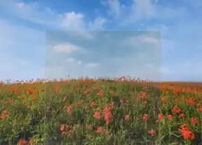 花の赤色、葉の緑色、空の青色はより濃く鮮やかに、雲の白はより白く見えます。 |