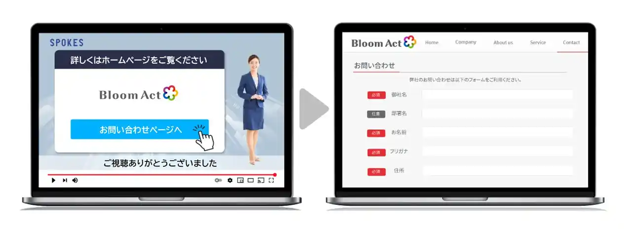 さらに、SPOKESは視聴者が見たい項目を選択できるインタラクティブ動画も作成可能。これにより「動画を見てもらえたか」だけではなく、「どの部分を何回見ているのか」の閲覧ログを把握できます。これらの特長をふまえ、情報発信の精度向上と営業活動の効率化が両立できることを評価いただき、このたび正式導入に至りました。 |