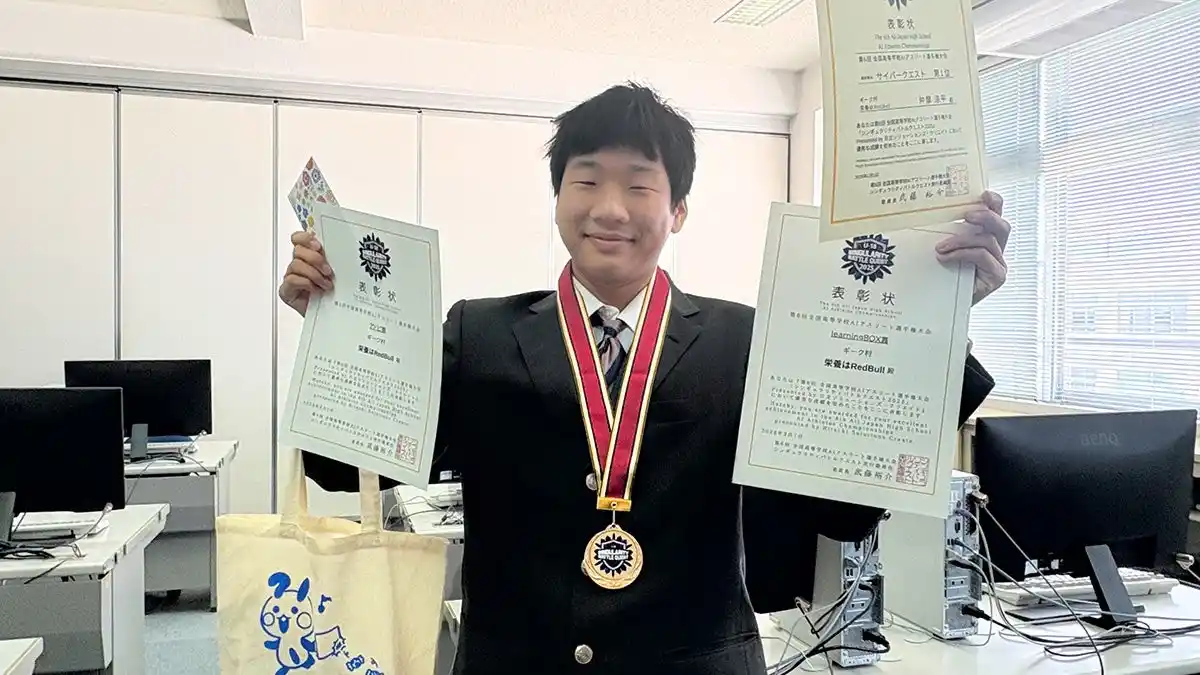 eラーニングシステムの開発・運営を行うlearningBOX株式会社(本社:兵庫県たつの市、代表取締役:西村 洋一郎)は、第6回全国高等学校AIアスリート選手権大会「シンギュラリティバトルクエスト2025」に協賛しています。本大会において、当社として初めて企業賞「learningBOX賞」を設け、4校に授与しました。さらに、受賞校のうち3校を訪問し、賞品の贈呈および高校生との交流を行いました。 |