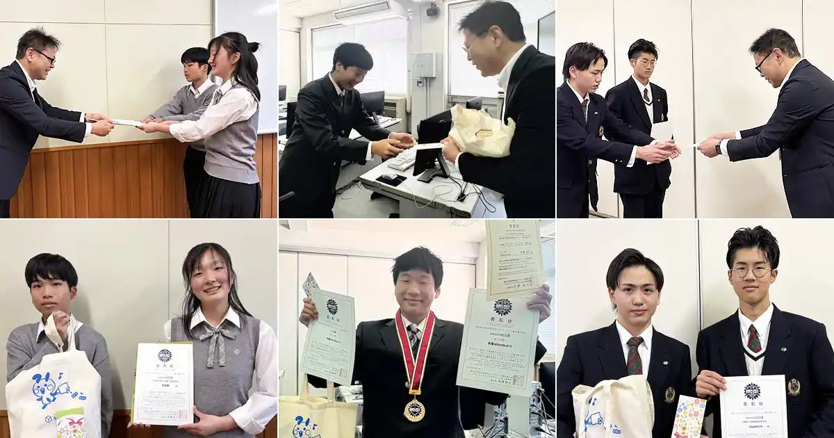 大会終了後、上記4校に賞状、図書カード(1万円分)、当社公式キャラクターはこうさのグッズなどを贈呈。茨城県立竜ヶ崎第一高等学校、神奈川県立藤沢工科高等学校、京都府立嵯峨野高等学校を訪問し、チームの高校生にインタビューも行いました。高校生たちの喜びの声や受賞の裏側、今後チャレンジしたいことなどインタビューも実施しましたので、ぜひご覧ください。 |