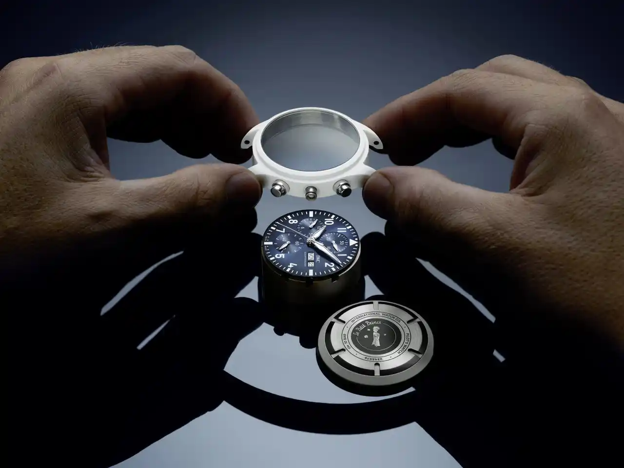 スイスの高級時計マニュファクチュールであるIWCは今回、ホワイト・セラミックを使用した初の“プティ・プランス”モデルを発表します。「パイロット・ウォッチ・クロノグラフ 41 “プティ・プランス”」(Ref. IW389410)は、41 mmのホワイト酸化ジルコニウム・セラミック製ケースを備えています。この先進的な素材は、スティールよりも軽くて硬く、傷がつきにくく、表面がベルベットのように滑らかであるため、腕時計に最適です。ホワイト・セラミックのケースにはサンレイ仕上げが施され、独特なカラーグラデーションを生み出すディープブルーの文字盤と美しいコントラストを織り成しています。 |