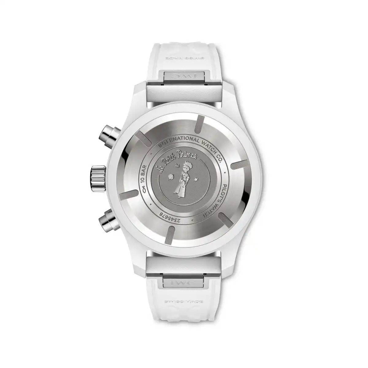さらに、実用的なEasX-CHANGEストラップ交換システムが装備されており、ボタンを押すだけでホワイトのラバー・ストラップを交換することができます。搭載される高性能のクロノグラフムーブメント「パイロット・ウォッチ・クロノグラフ 41 “プティ・プランス”」にはIWC自社製ムーブメント、キャリバー69381が搭載されます。性能、信頼性、精度に重点を置いて設計された、伝統的なコラムホイール採用のこの機械式クロノグラフにより、最大12時間までの時間計測を正確に行うことができます。 |