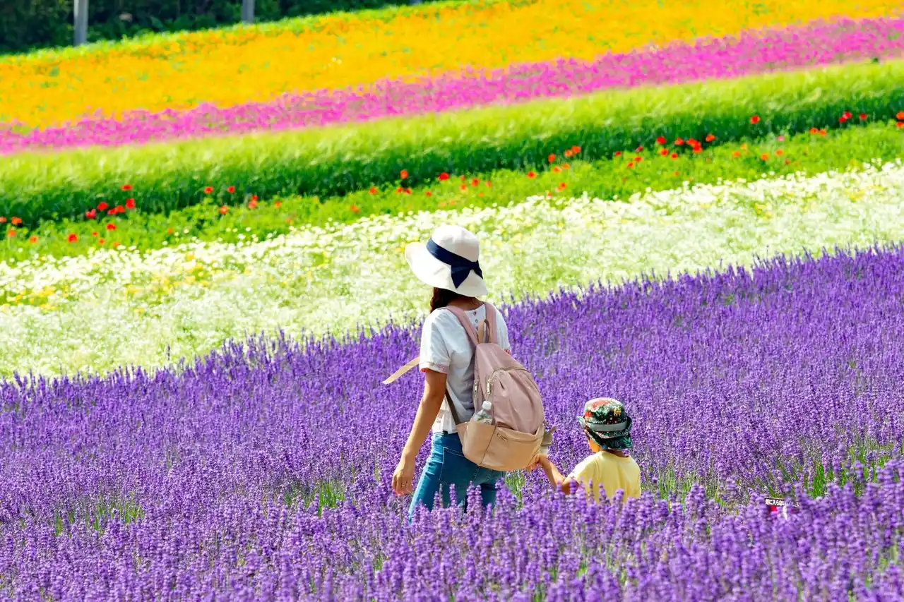 ノゾホテルは北海道の中心部、富良野市の北西、富良野スキー場に近い、北の峰地区に立地し、旭川空港から車でわずか1時間の距離にあります。富良野は四季折々の魅力に溢れ、一年を通じて様々なアクティビティを楽しめる地域です。夏に向けてはラベンダーやひまわりが咲き誇り、アスパラガス、富良野メロンなど旬の野菜や果物も楽しむことができます。ラベンダーが見頃となる6月から8月は、ラベンダー祭りをはじめとしたイベントが催され、多くの人で賑わいます。