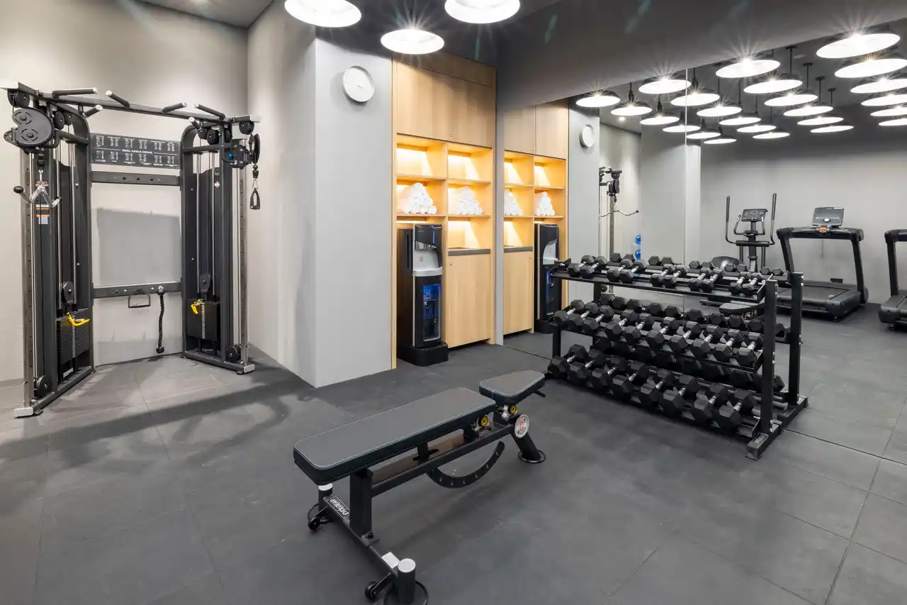 午前6時から午後23時まで利用可能なジム |