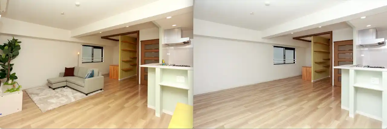 | 家具・私物・雑多な写り込みを自然に除去。家具のみ残す・整理整頓などの自動編集にも対応|無料登録で18枚分プレゼント |