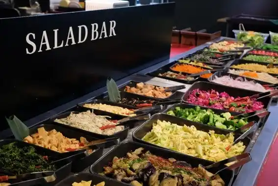 サラダバーは45品。あさくまの濃厚なコーンスープ、牛すじカレー、デザートバーもついてきます! |