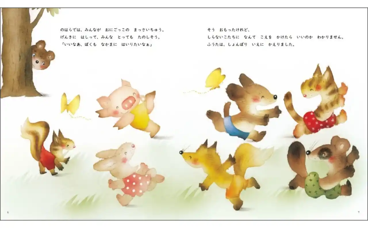 いしころの「い」、れんげの「れ」、おてての「て」── 仲よくなるための大事なことば「いれて」。新しい世界に飛び込むこぐまのふうたの勇気と、優しく支える母親の姿が温かく描かれた一冊。新しいともだちができる嬉しさがいっぱいの絵本です。 |