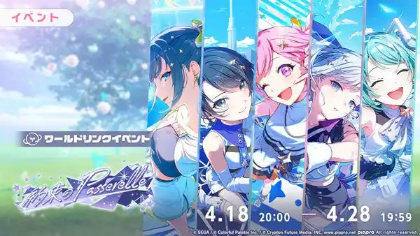 株式会社セガ(本社:東京都品川区、代表取締役 社長執行役員COO:内海州史)と株式会社Colorful Palette(本社:東京都渋谷区、代表取締役社長:近藤裕一郎)は、iOS/Android向けリズム&アドベンチャー『プロジェクトセカイ カラフルステージ! feat. 初音ミク(以下、プロジェクトセカイ)』について、2026年4月18日(土)より、ワールドリンクイベント「約束のPasserelle」、「YELL of Messengersガチャ」を開催いたします。 |