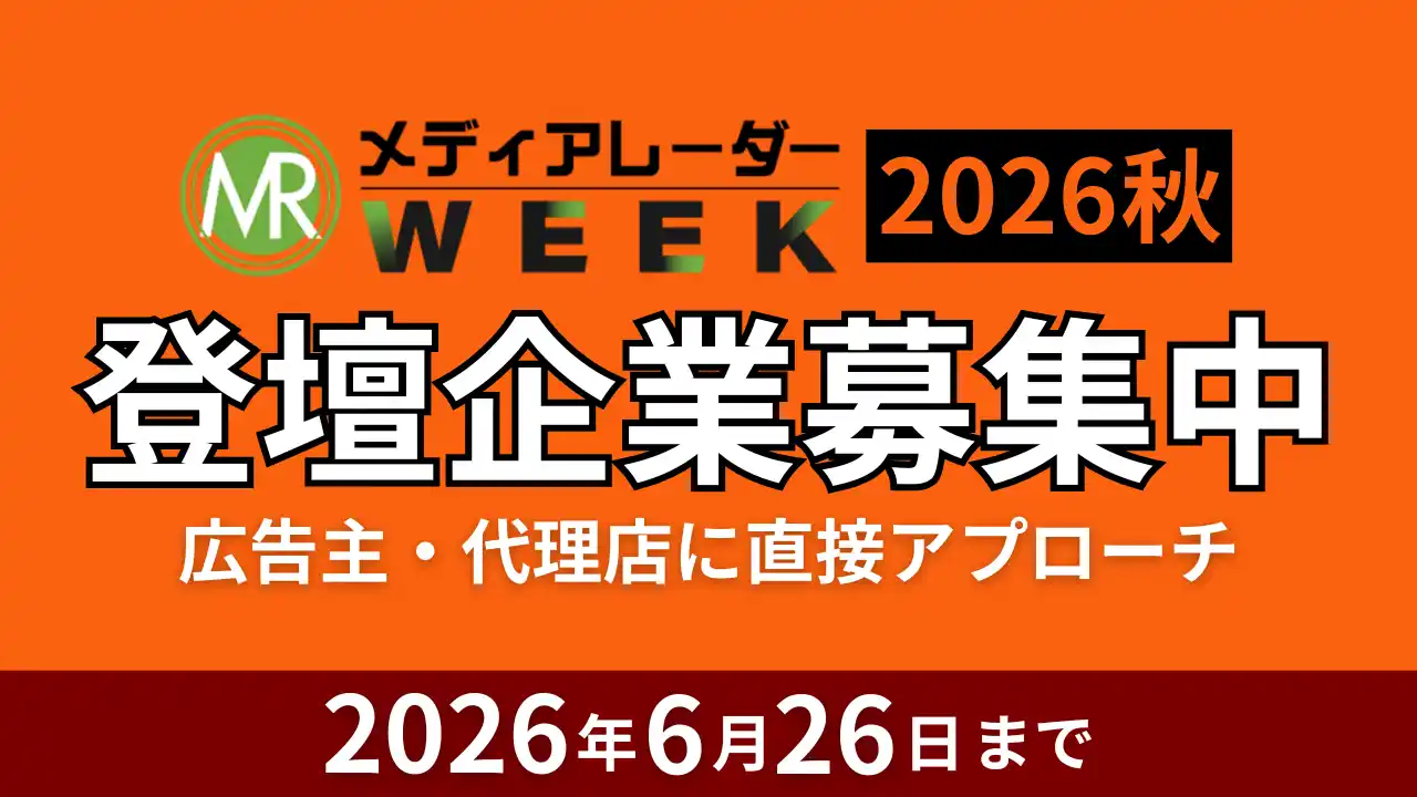 株式会社アイズ(所在地:東京都渋谷区、代表取締役社長:福島範幸、東証グロース:5242)が運営するNo.1*¹の広告業界のプラットフォーム「メディアレーダー」は、主催する「第23回 メディアレーダーWEEK 2026 秋」の登壇企業の募集を開始しました。