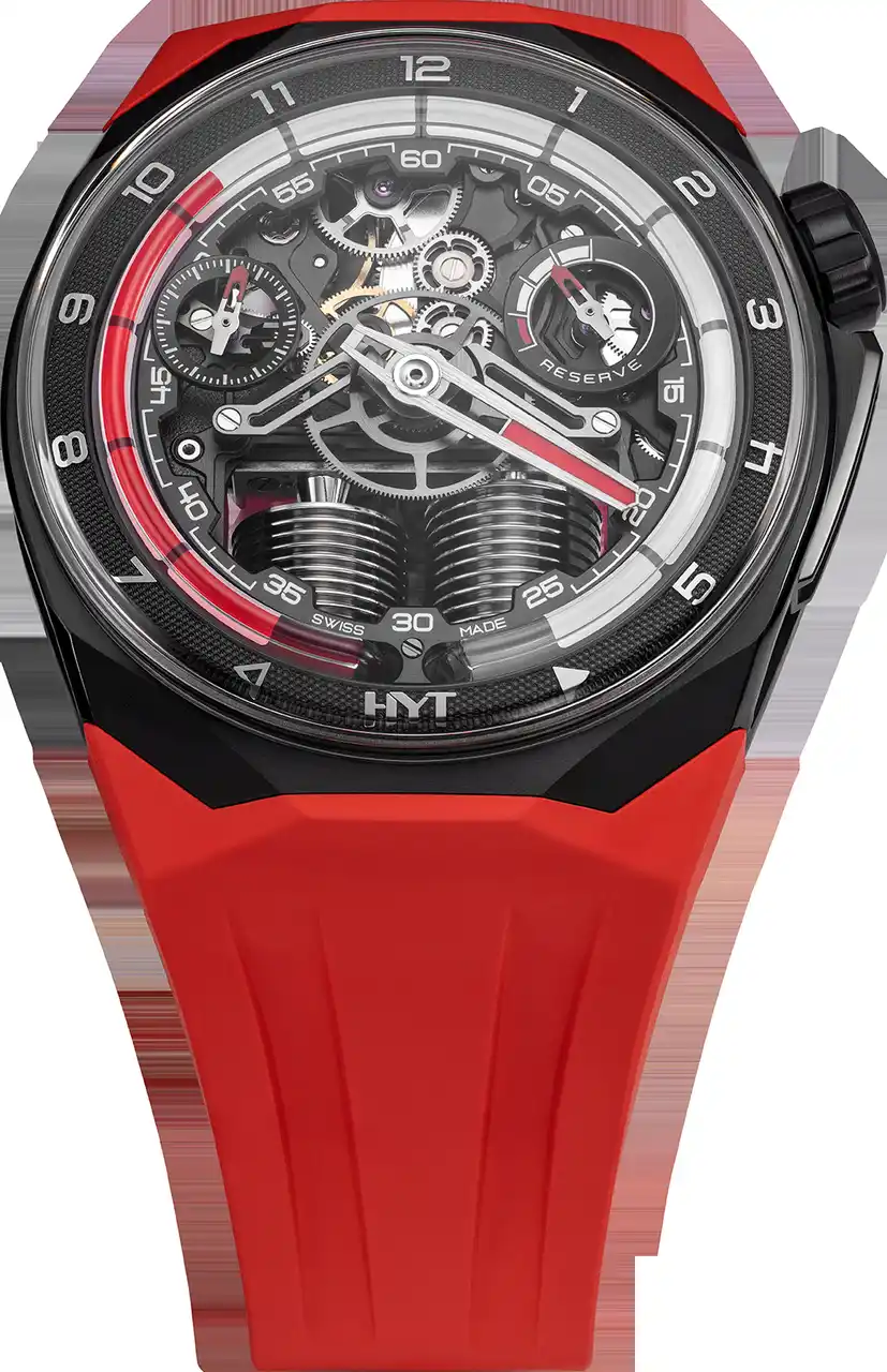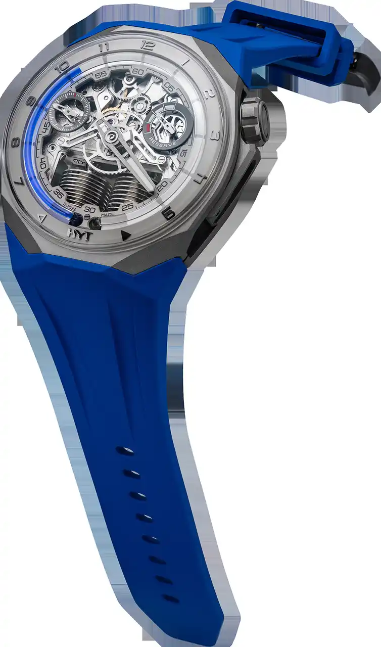 これら3つの色彩表現の下に、HYTはS1を市場で最もユニークなスポーツウォッチの一つたらしめるすべての要素を継承しています。人間工学に基づいて傾斜した側面を持つ45.30×17.20mmのチタン製ケースは、手首に自然にフィットします。ストラップの取り付け角度を急勾配にすることで、流れるようなラインと、実生活での活動のために設計された時計にとって不可欠な、安定感と確実な装着感を実現しています。 <ハイドロメカニカル・コア> |