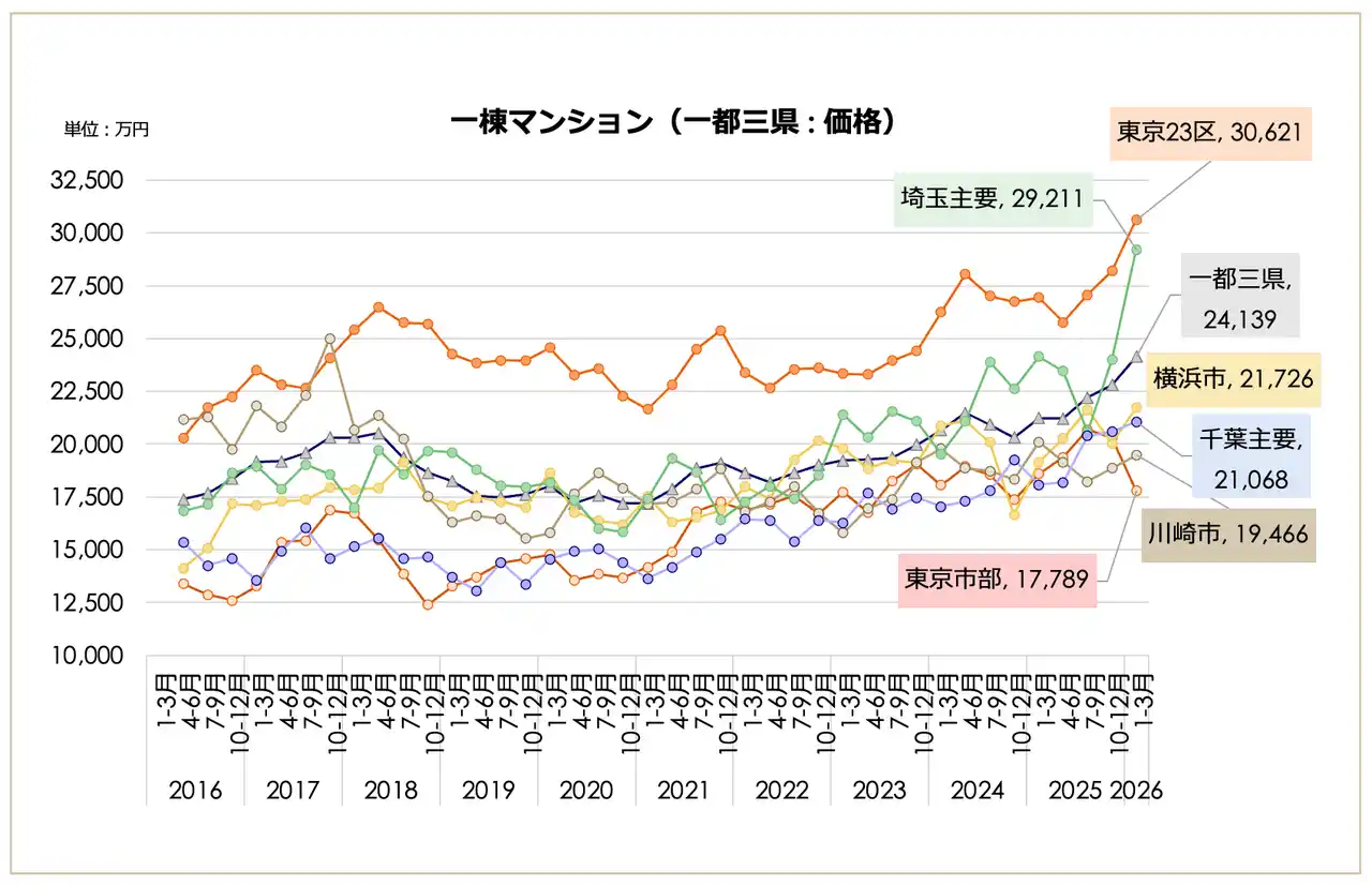 【一都三県・主要都市別】東京23区が3億円台、埼玉主要都市が2.9億円台へ急伸 |