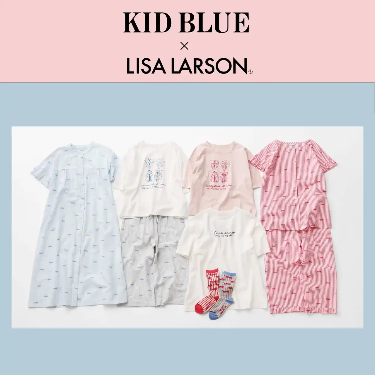 | 日本のインナー・ナイトウェアブランド「KID BLUE」との初共演が実現。マイキー柄のパジャマや、リサの娘ヨハンナによる描き下ろしメッセージTシャツなど、北欧の温もりと極上の着心地が溶け合うリラックスウェアが揃いました。 | |||||||||||||||||||