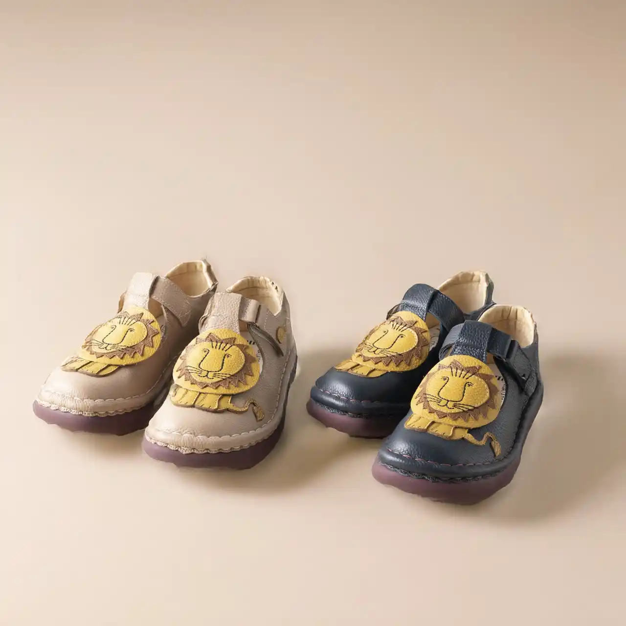 | 【Lisa Larson × Estacion】ライオン・本革ストラップシューズ(ベージュ) | |||||||||||||||||||