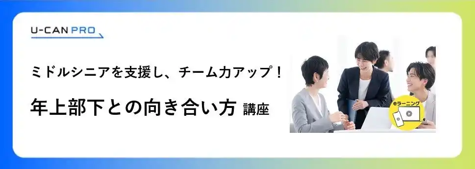 | 株式会社ユーキャンは法人様向けeラーニング研修「年上部下との向き合い方講座」をリリースいたしました。 |