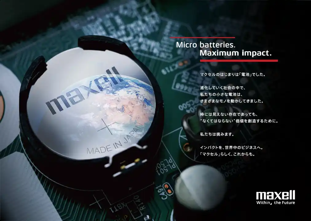 私たちは創業以来、小さな電池に大きな価値を宿す技術を磨き続けてきました。今回制定した「Micro batteries. Maximum impact.」は、その歩みと未来への挑戦を端的に表現した言葉です。見えない部分で世界のビジネスを支え続ける存在として、マクセルらしい独自価値をさらに高め、小型電池領域でのフロントランナーをめざしてまいります。 |