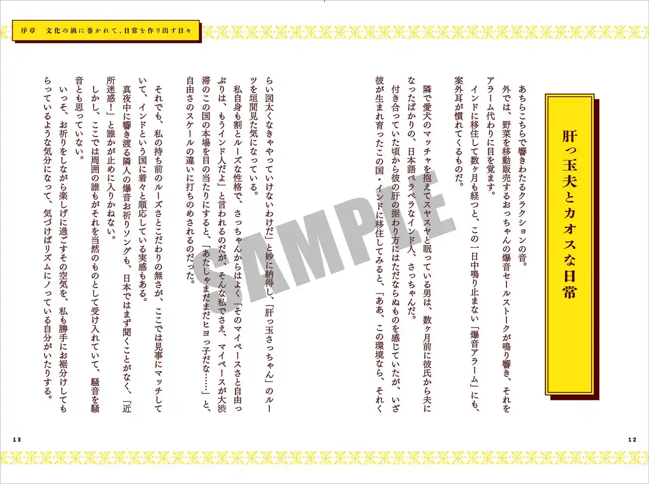 ラブラブな新婚生活を夢見て飛び込んだ先で待っていたのは、日本の常識が通用しない「毎日が問題だらけ」な日々。異文化で暮らす中での戸惑いや、驚き、それでもどこか愛おしい、インドでのリアルな暮らしをユーモアたっぷりに描き出します。 |