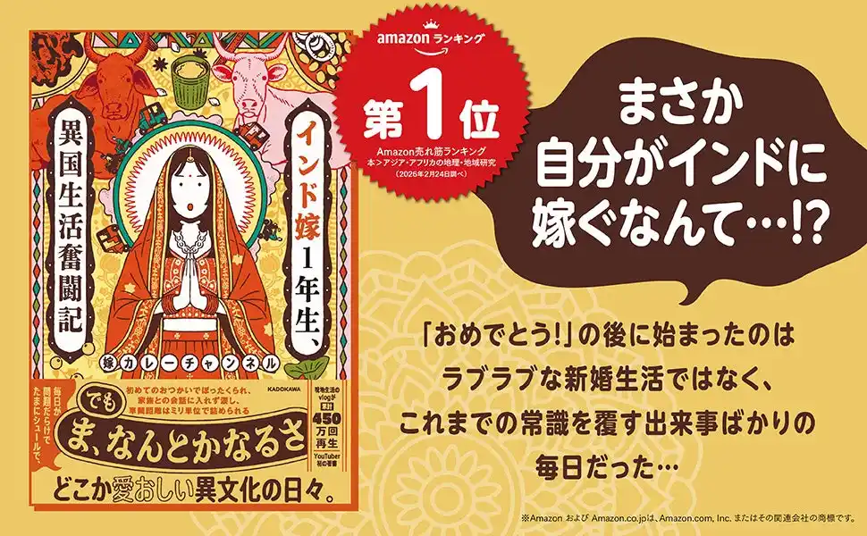 株式会社KADOKAWA(本社:東京都千代田区、取締役 代表執行役社長 CEO:夏野剛、以下KADOKAWA)は、2026年4月20日(月)に、嫁カレーチャンネル著『インド嫁1年生、異国生活奮闘記』を発売いたします。