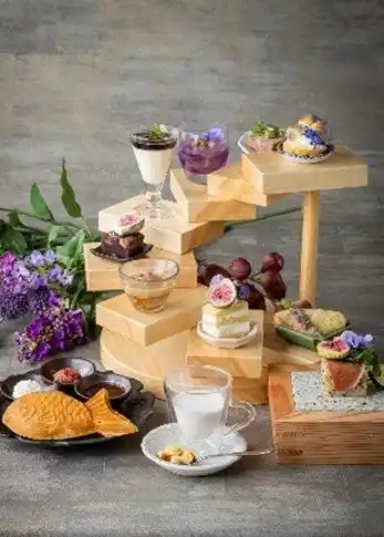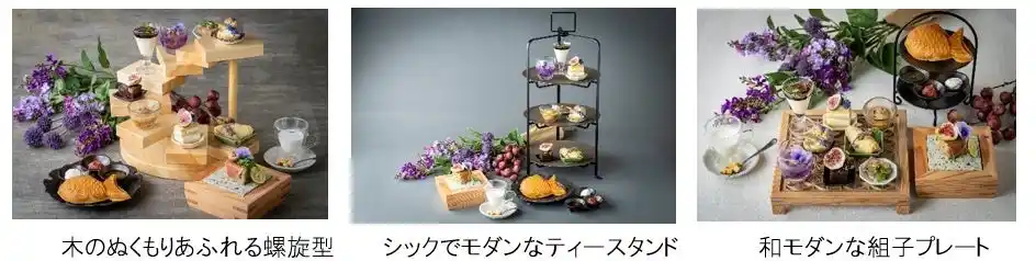 水溶性食物繊維や鉄などが豊富に含まれ女性の健康維持にもうれしい無花果をふんだんに使用し、旬のライラックをイメージして紫色に仕立てたアフタヌーンティー。 |