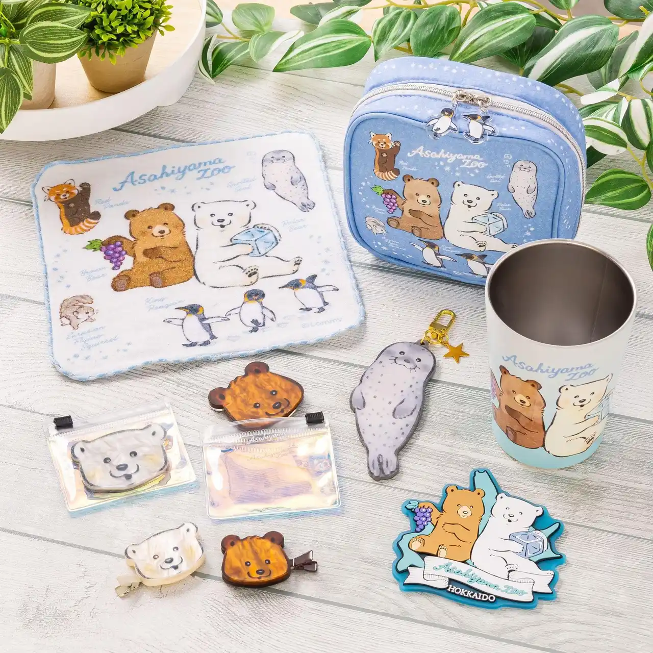 今回の商品では、一緒に旭山動物園に連れて行きたくなるぬいぐるみマスコットをはじめ、ステッカー、アクリルチャーム、ポーチなど、日常でも旭山動物園の動物たちを身近に感じられる商品が勢ぞろいします。 |