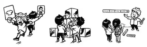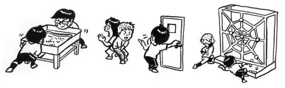「だれが・どこで・なにを・どうした」の4種類の言葉を組み合わせて生まれる偶然のピンチを笑い飛ばす「大ピンチバー」。男の子の全身を襲うピンチの組み合わせを楽しむ「大ピンチブロック」。 |