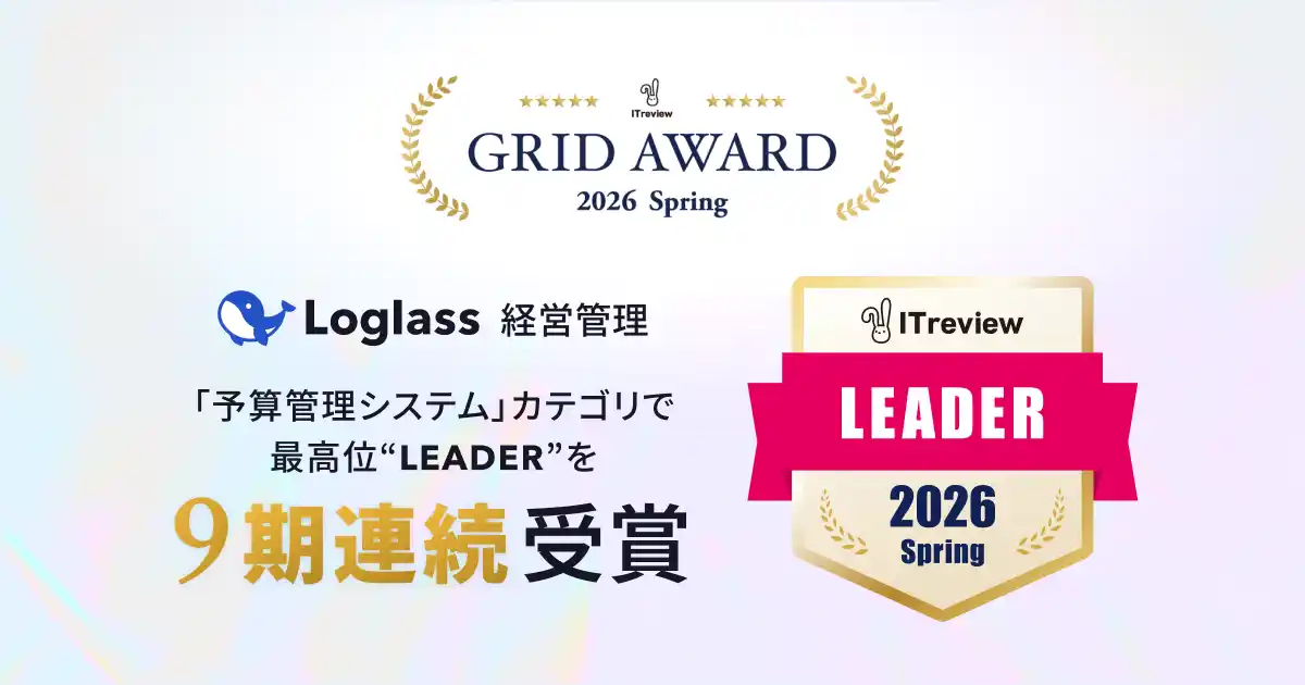 | 株式会社ログラス(本社:東京都港区、代表取締役 執行役員CEO:布川 友也、以下 「当社」)は、B2B向け IT製品/SaaSのレビュープラットフォーム「ITreview」が顧客満足度の高い製品を表彰するITreview Grid Award 2026 Springにて、クラウド経営管理システム「Loglass 経営管理」が、「予算管理システム」カテゴリで最高位の「Leader」を受賞したことをお知らせいたします。2024 Springから連続して9回目の受賞となります。 | |||