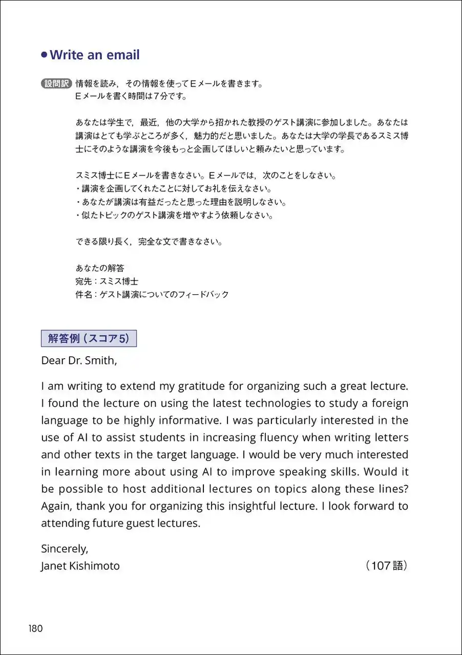 実際の試験を採点するETSの採点者がライティング・スピーキングの解答例を評価。実際のスコアを反映した解説がついているので、どのような解答が何点になるのかがつかめます。 |