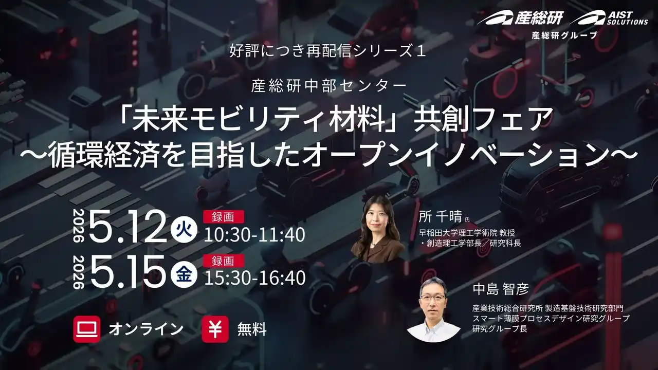 (産総研グループ/無料セミナー)「未来モビリティ材料」共創フェア ~循環経済を目指したオープンイノベーション~ シリーズ1【5/12,15 オンライン配信】