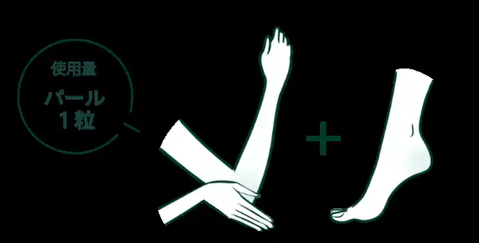 肘・かかと:パール1粒分 |
