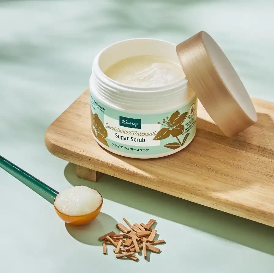 新登場のサンダルウッドは、スクラブカテゴリーではまだ展開の多くない、サンダルウッドオイルを配合した心落ち着くウッディな香りです。クナイプならではの自然由来の処方で、手に取りやすく、日常に取り入れやすいボディケアとしてお使いいただけます。さらにシアバターを配合することで、しっとりとした保湿保護効果を高め、きめ細かいふっくら肌に。脂性肌・乾燥肌を問わずお使いいただけます。日々のバスタイムで全身の角質ケアと保湿をしながら、心までリラックスし、うるおす時間へと導きます。 |