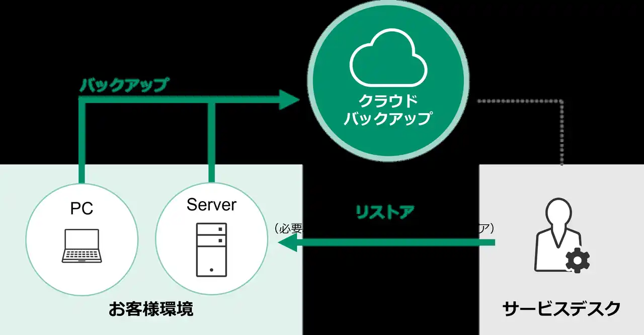 図2:クラウドへのバックアップと、サービスデスクによるデータ復旧作業の運用イメージ |