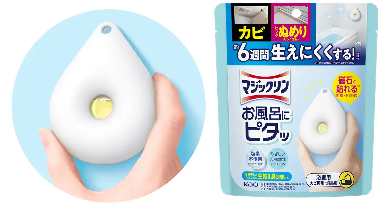 花王株式会社(社長・長谷部佳宏)は、住居用ブランド「マジックリン」より、2026年5月23日、カビやピンクぬめりを約6週間生えにくくする*²*³*⁴『マジックリン お風呂にピタッ』を発売いたします。 |