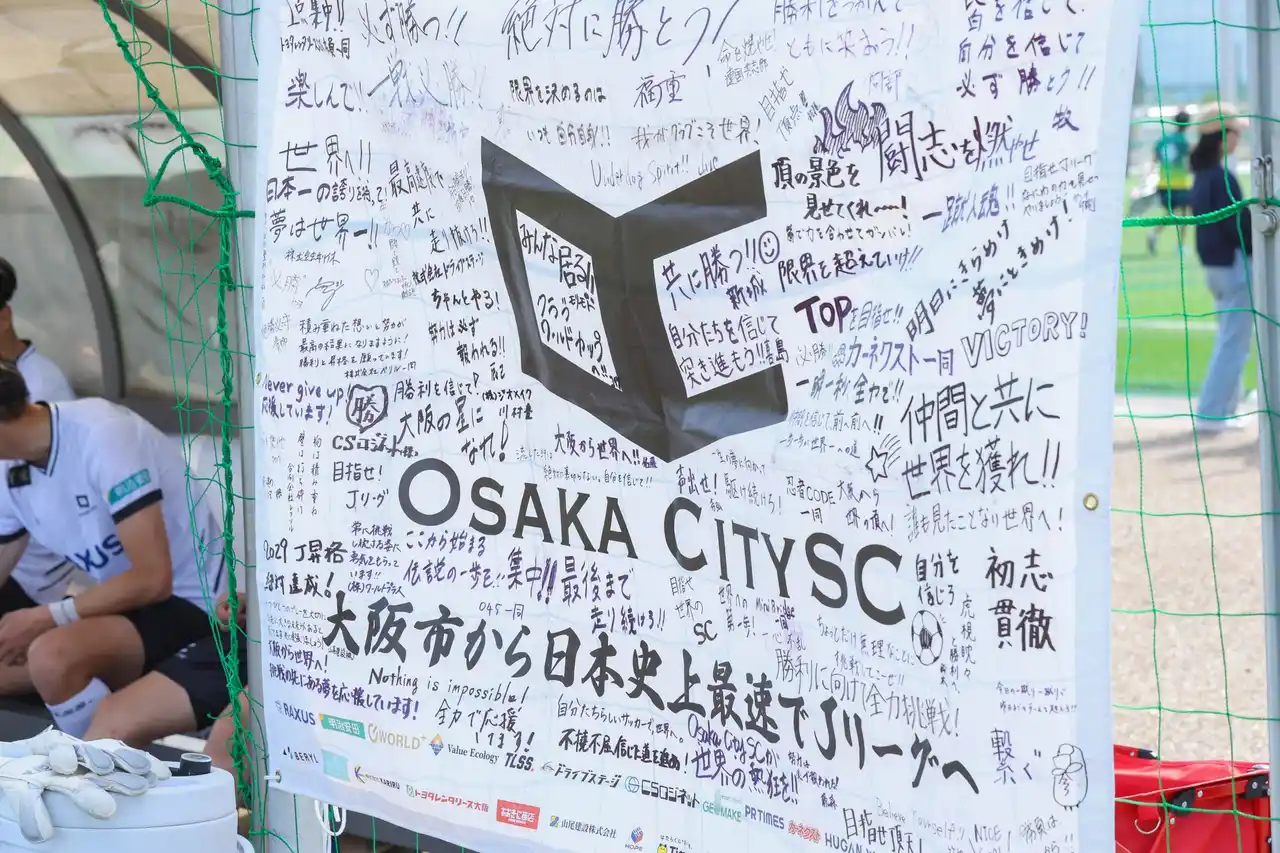 | Osaka City SCは、「大阪のど真ん中に、誰もが熱狂できるクラブを創る」という想いから誕生しました。「挑む者が世界を揺らす」をスローガンに掲げ、圧倒的な強さで「史上最速でのJリーグ昇格」を目指しています。 | |||