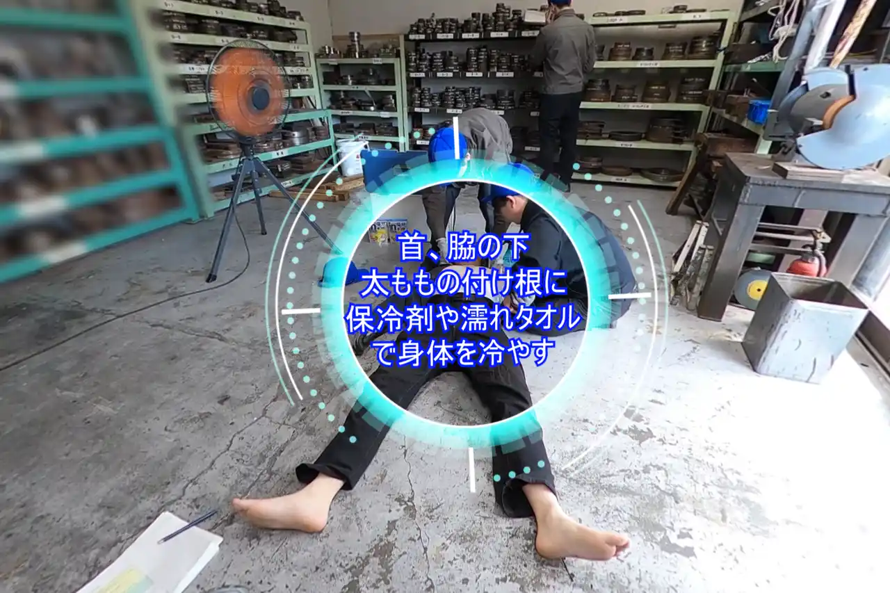 | 本コンテンツは「初期症状の追体験」「症状の早期発見」「対処法」を疑似体験、また客観的に学ぶ事で、職場等における「熱中症」を事前に防ぐための学習VRコンテンツです。 | ||||||||||||||