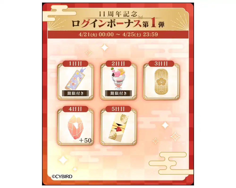 ■ログインボーナス「11周年記念◆ログインボーナス」を3本立てで開催予定!